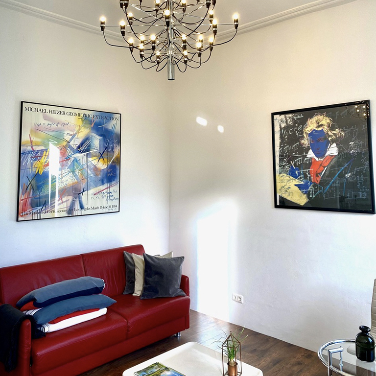 In der „Beletage“ im 1.Obergeschoß liegt unser Chez Coco Apartment 2. Im klassischen Stil mit hoher Stuckdecke im Jahr 2020 renoviert und modern eingerichtet, bietet es auf 47 m² ein großes Wohnzimmer, ein separates Schlafzimmer, eine voll ausgestattete Küche mit Esstisch und ein Bad mit Dusche und WC.